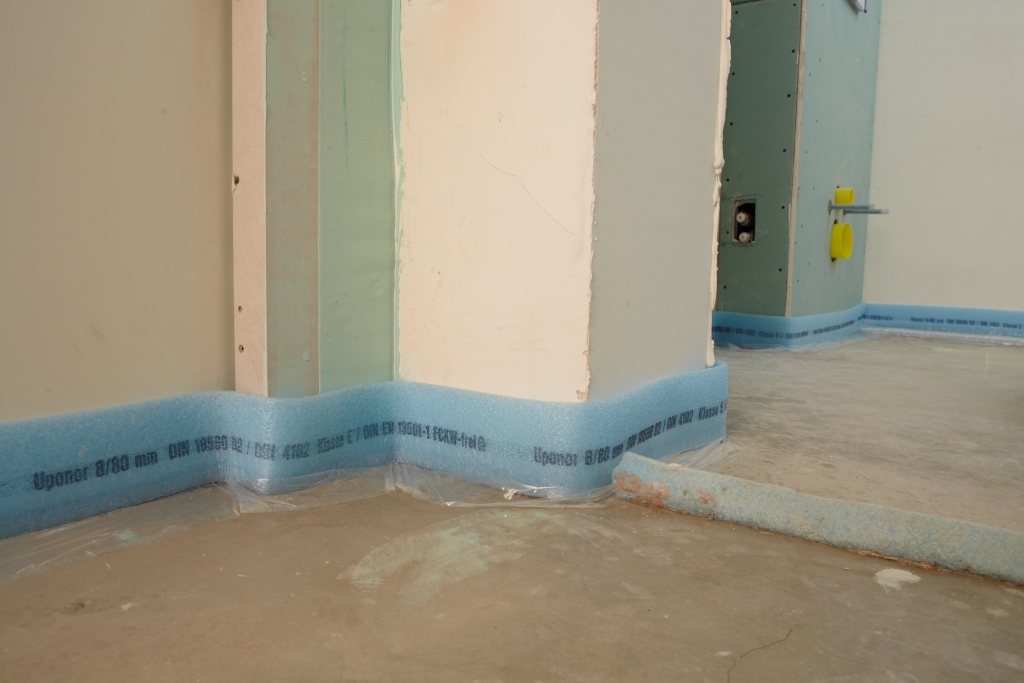 - À la fin de l'installation, vous pouvez marcher le long de la bande avec un rouleau de construction - cela éliminera les défauts mineurs et plaquera en outre la bande contre le mur. Ce n'est qu'après cette étape que vous pouvez commencer à remplir la chape.