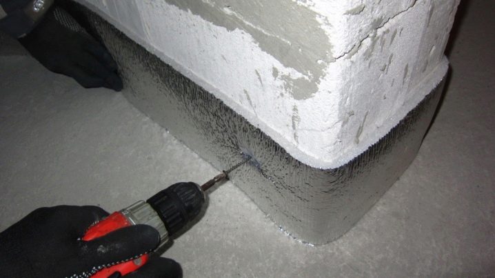 - Agrafeuse de meubles. Dans le cas où les murs du bâtiment sont en béton cellulaire, la bande est fixée avec une agrafeuse,utilisant des entretoises métalliques.