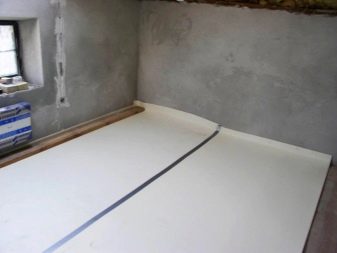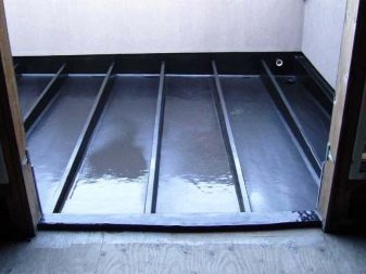 L'étanchéité laminée dans l'appartement est assez simple à installer. Les bandes se chevauchent. Tous les murs ci-dessous sont recouverts d'une couche de matériau isolant. Après l'installation, vous pouvez, sans vous arrêter, commencer à verser la chape.