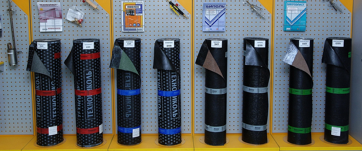 - Matériaux de roulement. C'est l'un des premiers types d'imperméabilisation. Les revêtements sont disponibles en rouleaux et se chevauchent au sol avec la plante au mur. Ils sont fabriqués à partir de carton, de fibres synthétiques non tissées et de fibre de verre.On trouve souvent dans la composition diverses résines et du bitume. Les matériaux de couverture, l'isolation auto-adhésive «Technonicol», «Hydrostekloizol» et l'asphalte sont courants et populaires pour différentes applications. Le matériau de toiture reste rentable et il est facile d’isoler les fondations. Le matériau bon marché et facile à poser n'a pas une grande durabilité en raison du contenu du carton dans sa composition. Au fil du temps, il peut apparaître des fissures.