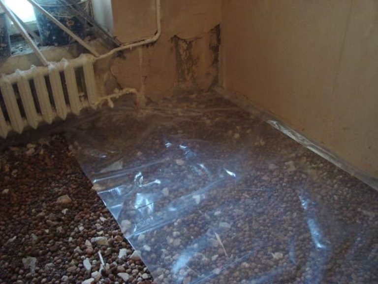 - Maintenir un environnement intérieur sain et sûr. Le blocage de la pénétration d'humidité de l'extérieur exclut le développement dans l'espace sous la chape de champignons et de moisissures, qui se développent bien dans un environnement chaud et humide. Cela est particulièrement vrai pour les chapes sèches.Entre les granules d'argile expansée plus d'espace pour le développement de micro-organismes nocifs.