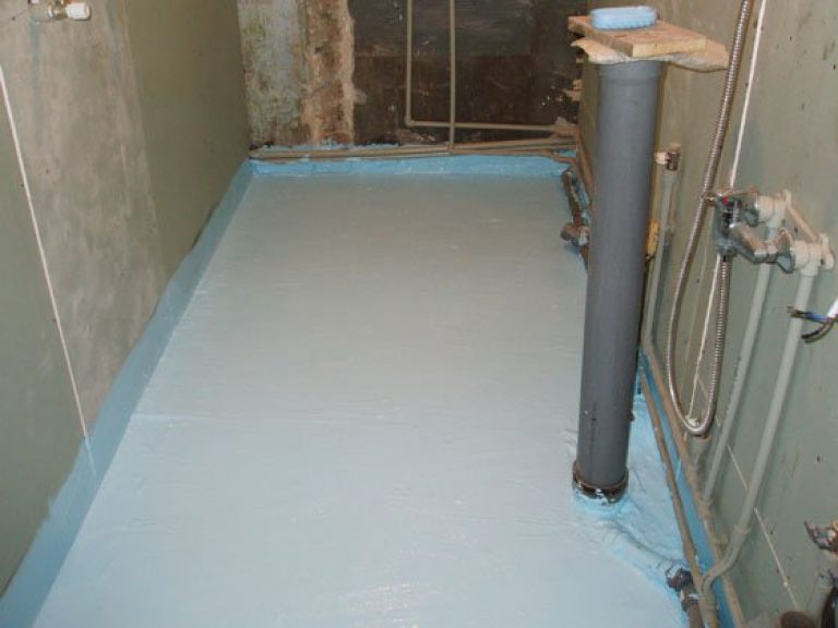 La méthode de revêtement peut être utilisée pour isoler la salle de bain. La solution est appliquée uniformément et vient au mur. Il est important de traiter toutes les communications pour éviter les fuites par les coutures. Avant de poser le carrelage ou la chape de finition, il reste à attendre que la couche sèche. En règle générale, l'heure de réglage est d'au moins un jour.