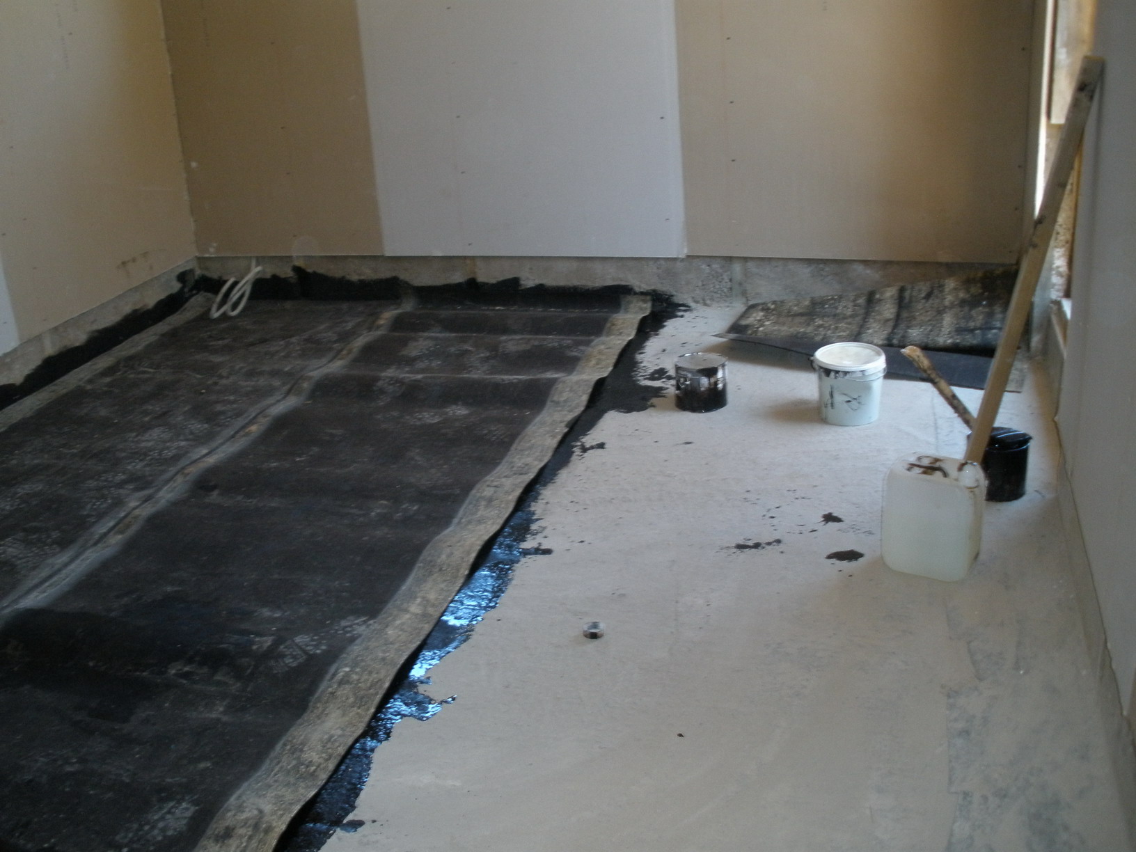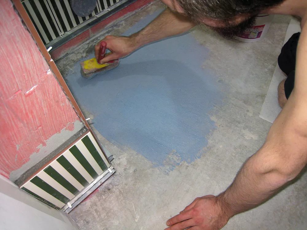 L'étanchéité à l'abrasif est la solution la plus courante, la plus abordable et la plus fiable. Il peut être utilisé avec la méthode de la peinture et du rouleau dans l’appartement et dans une maison privée. Il est recommandé d'appliquer un isolant en plâtre sous une chape sèche.