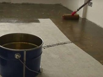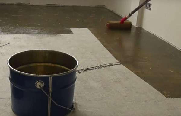 - Vous devez d’abord effectuer l’amorçage du sous-plancher. Cela améliorera l'adhésion de l'ancien revêtement avec la nouvelle solution. Si le sol rugueux est poreux, il doit être traité avec un apprêt (une composition visqueuse pour apprêt).