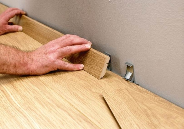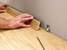 - Une fois la solution sèche, il est nécessaire de procéder à l'installation de la couche de finition. Dans le même temps, il doit y avoir des espaces près du mur, qui peuvent ensuite être fermés avec des plinthes.
