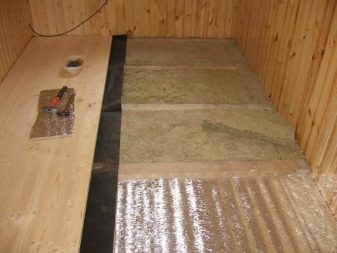 - Maintenant, vous devez poser une couche de laine de verre ou de laine minérale sur la base. Les tuyaux disponibles dans la pièce doivent être enveloppés dans un matériau insonorisé.