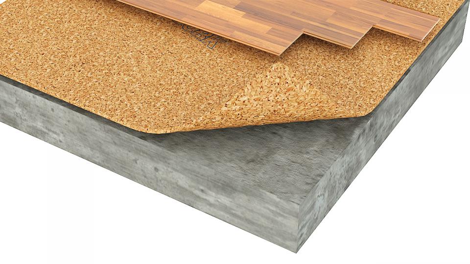 - Souvent, pour les systèmes d'isolation acoustique, utiliser des substrats. Les sous-couches de liège sont les plus courantes.en écorce de liège comprimée et broyée. Ils ont une haute isolation phonique et peuvent non seulement atténuer le bruit à l'intérieur de l'appartement, mais également empêcher les voisins de parler et de piétiner par le bas.