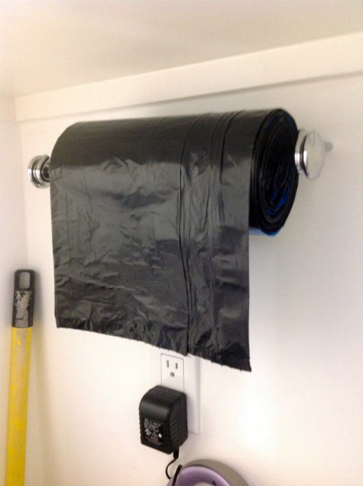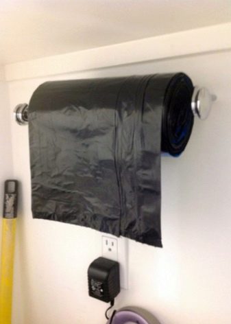 - Stockage des sacs à ordures. Il existe une vie inhabituelle piratage informatique et pour stocker des sacs à ordures. Pour qu'ils soient toujours à portée de main, vous pouvez les accrocher sur des attaches pour essuie-tout. Cette solution, qui n’est pas évidente au premier abord, facilitera le processus de nettoyage.
