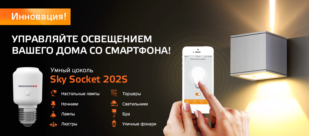 REDMOND SkySocket, complété par une lampe à économie d'énergie, il vous permet d'allumer les lumières à l'entrée du garage. Il peut être contrôlé directement depuis l'écran de votre smartphone via l'application Ready for Sky.