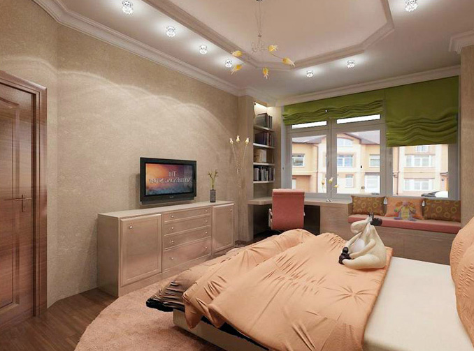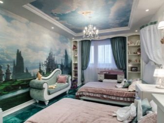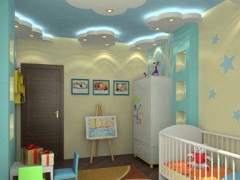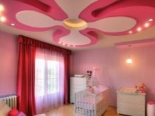 Il est recommandé d’éliminer complètement la présence de figures massives au plafond, car elles affectent négativement la psyché des enfants. Il est bien préférable que le plafond de la chambre de bébé soit fabriqué dans une forme légère, créant une sensation de confort et de bien-être.