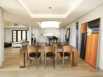 Les plafonds simples se composent de deux ou trois niveaux et peuvent être réalisés sous la forme de cadres, de diagonales ou de certaines zones. Ici, chaque nouveau niveau est fixé au précédent et représente une composition unique. Le plus souvent, ils se trouvent dans des pièces avec de hauts plafonds, où il est nécessaire de créer un design unique et original de l'espace.