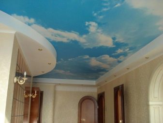 Dans certains cas, lors de l’installation d’un plafond profilé dans la partie centrale, vous pouvez utiliser du papier peint ou une toile tendue avec un motif imitant les étoiles.nuages ou autres éléments de conception appropriés.