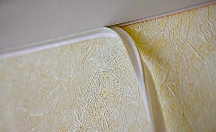 - L'installation cachée vous permet d'obtenir un résultat plus esthétique. Lors de l'installation, un rebord est formé entre le mur et la baguette, qui est facilement masqué par un insert décoratif.