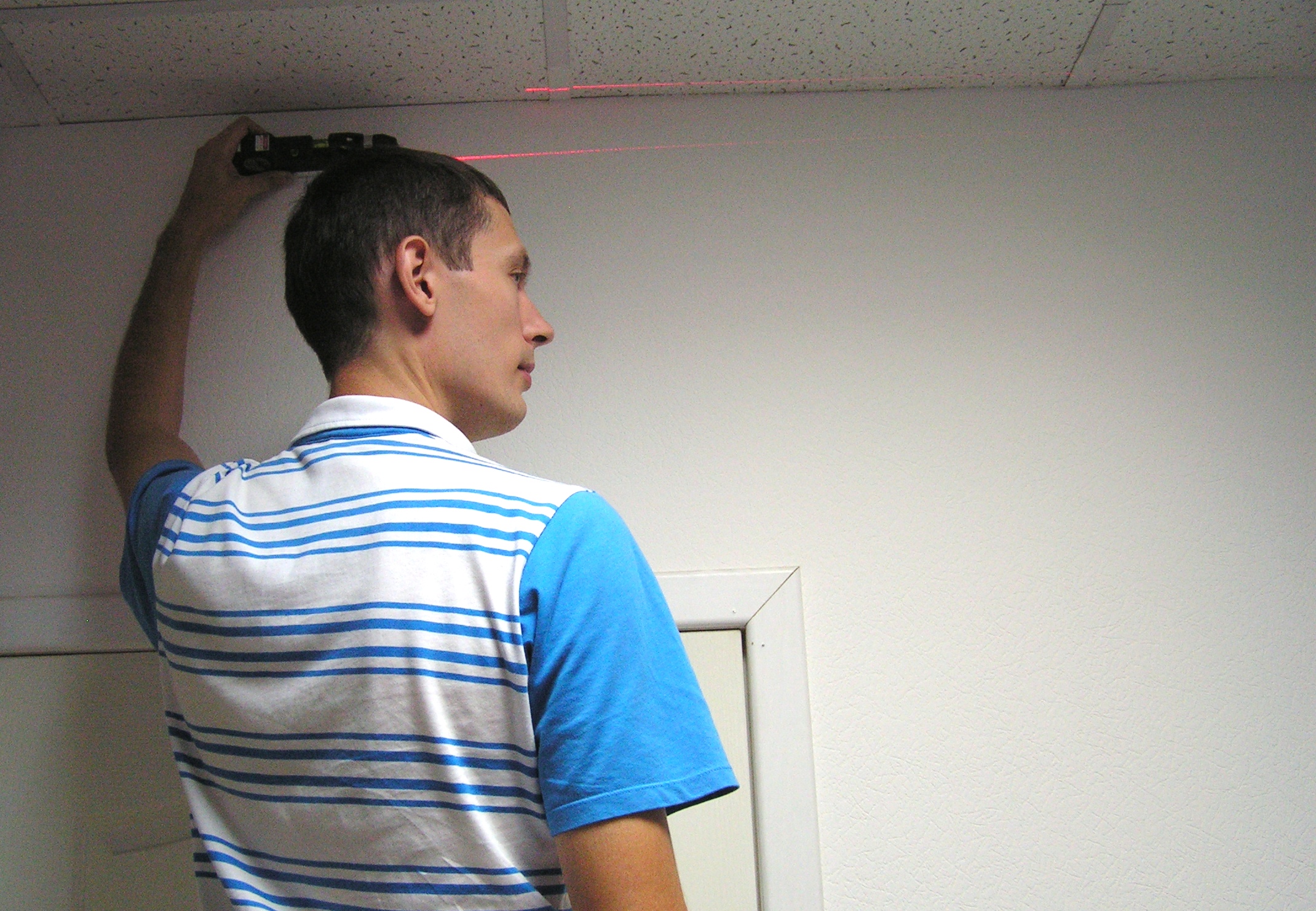 Lors de la première étape, la pièce où l'installation est planifiée est mesurée. Le paramètre principal de cette mesure est le périmètre de la pièce. Etant donné que la soudure du harpon à la toile est réalisée au stade de la fabrication, les mesures doivent être effectuées avec une précision particulière. Pour leur mise en œuvre, il est possible d'utiliser des roulettes (à la fois laser et métalliques) et un niveau de construction.