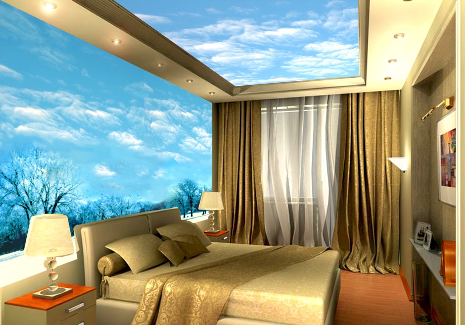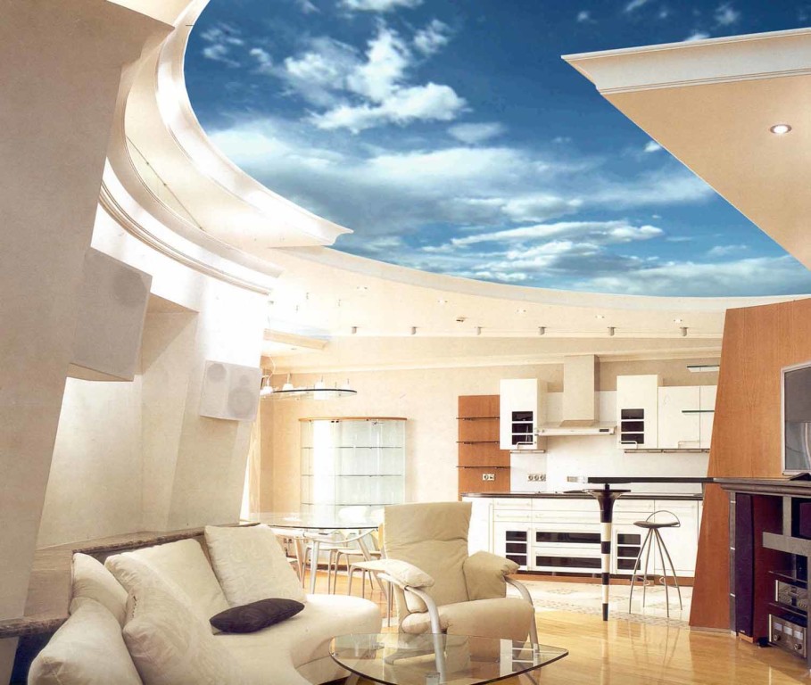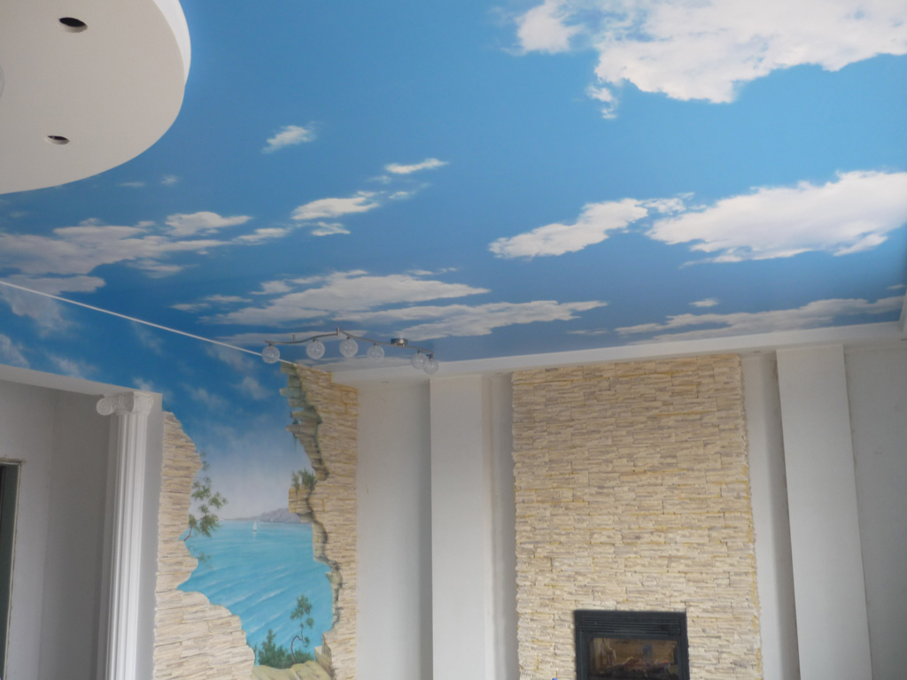 Aujourd'hui, le sujet du ciel est diversifié. Souvent, l’image elle-même est prise comme base, dont l’ordre peut coûter plus cher que la toile. En même temps, une image est sélectionnée de manière à créer un certain effet. Depuis aujourd'hui, il est important que l'image ne soit pas aussi belle que réaliste, ils utilisent l'impression de photos. Cela est dû aux différentes ambiances qui doivent être introduites à l'intérieur, ainsi qu'au degré d'éclairage d'une pièce en particulier.