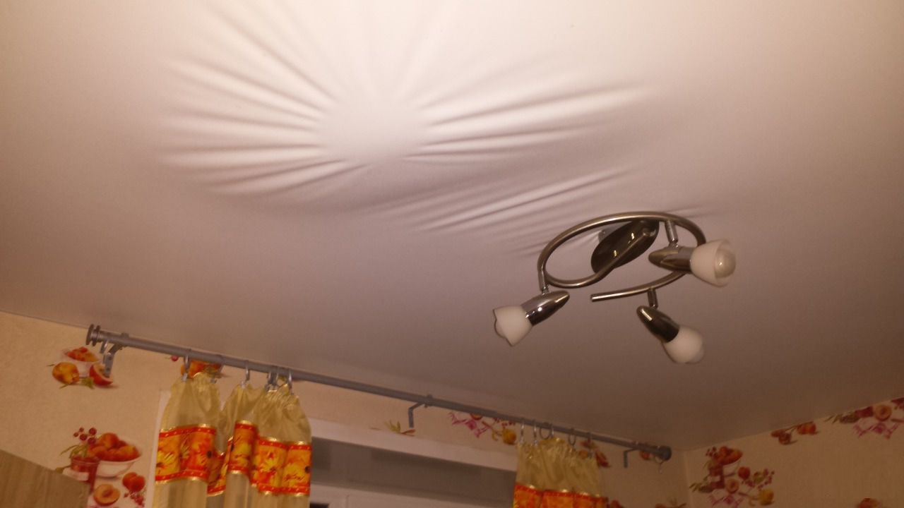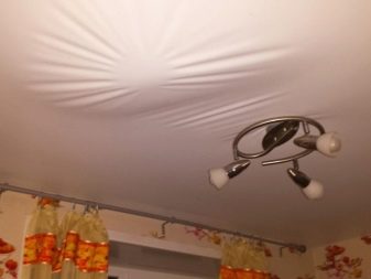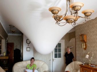 Dans une telle situation, le niveau de déviation peut être différent. Dans certains cas, le plafond s'affaisse presque jusqu'au sol, alors que la toile n'est pas déchirée et peut supporter une charge similaire. Le niveau dépend de la quantité d'eau qui est entrée dans l'espace entre la surface du plafond et la toile.