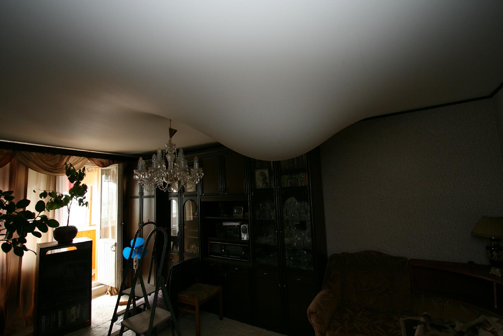 - La deuxième raison de l'affaissement normal est le poids de la bande.. Comme indiqué précédemment, le problème en question se rencontre le plus souvent dans des pièces de grande surface. C’est pour cette raison que dans les salles spacieuses, la toile est créée à partir de plusieurs parties.