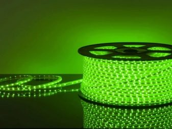 La bande de LED est constituée de cristaux lumineux situés sur une carte de circuit imprimé flexible spéciale d’une épaisseur de 3 mm, d’une largeur de 10-20 mm et d’une longueur de 5 m.Pour faciliter le transport et le stockage, les LED sont enroulées en bobine. Un tel luminaire fonctionne à partir d'un réseau normal de 220 V avec un courant constant de 12 V.