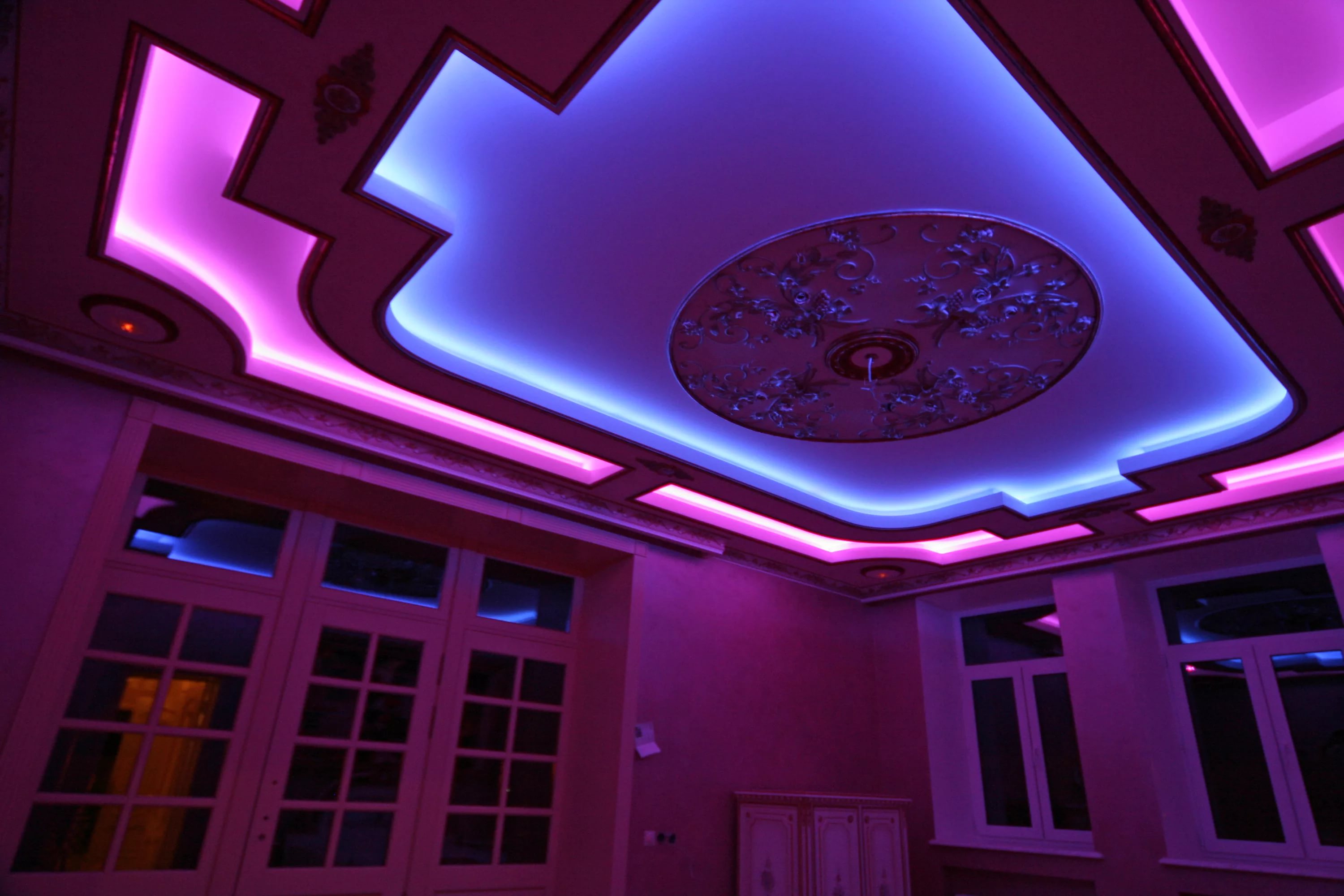 - L'éclairage à LED, en particulier la couleur, peut modifier les couleurs des objets environnants et du plafond - vous devez en tenir compte lorsque vous choisissez un ruban.