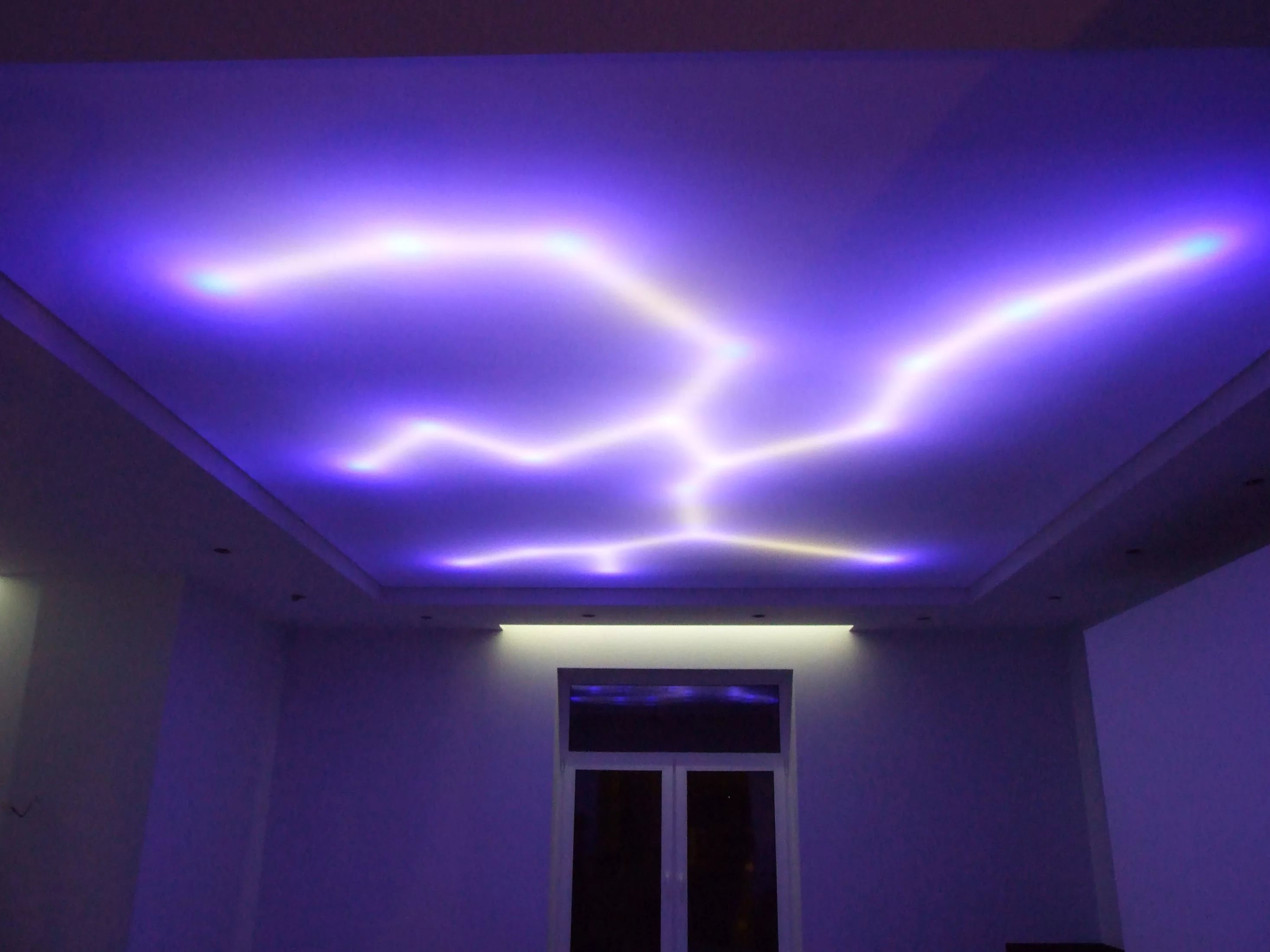 La luminescence des LED peut être multicolore, réglable à la demande du propriétaire, mais elle peut être monochromatique, par exemple blanche ou rouge. Avec l'aide de lampes à LED peuvent être disposés dans la lumière des enfants ou des peintures 3D colorées au plafond.