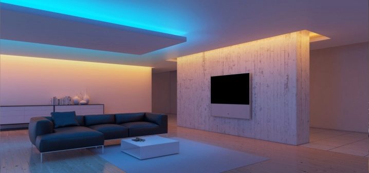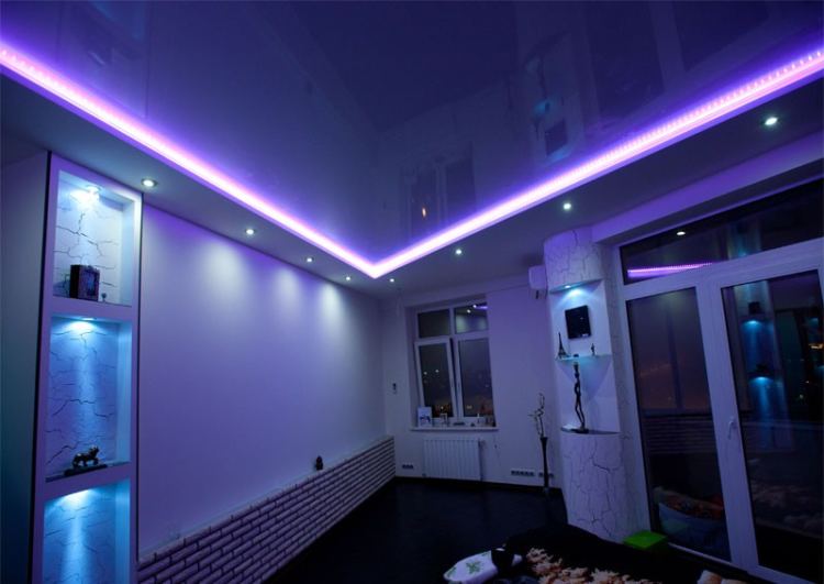 Les plafonds tendus offrent de grandes possibilités pour la créativité des concepteurs et la création de formes complexes à plusieurs niveaux. Il existe de nombreuses options pour éclairer les pièces avec de tels plafonds. L'un des plus populaires et des plus intéressants - l'utilisation de bandes de LED.
