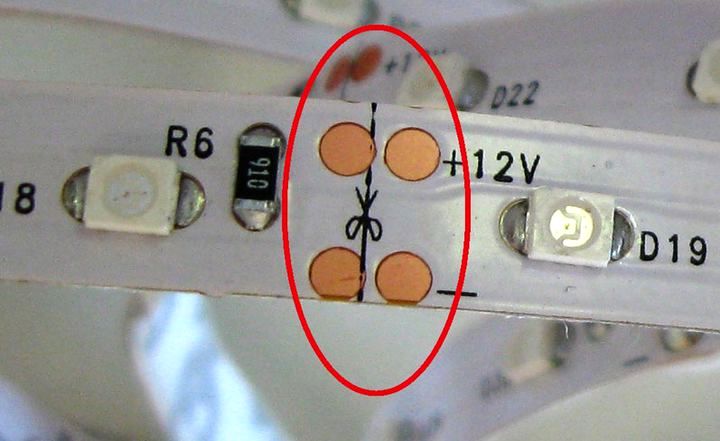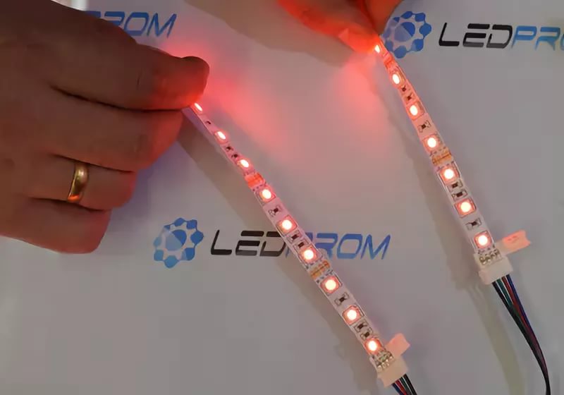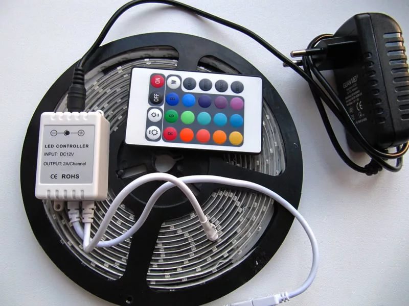 - La bande de LED est d'abord connectée au contrôleur, puis seulement - à l'unité d'alimentation en respectant la polarité;