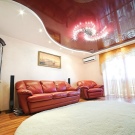 La variété de satin est plus chère. Les textiles produisent une plus grande largeur (environ 5 m), de sorte que ces plafonds sont généralement fabriqués en utilisant une technologie homogène. Une telle couverture semble coûteuse, fait allusion à un certain statut et compare tous les éléments intérieurs à elle-même, ce qui complique parfois le choix des composants de la composition intérieure.