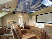 Toutefois, les stylistes, sur la base de considérations pratiques, ne recommandent pas de décorer les plafonds dans des endroits «humides» (par exemple, dans la salle de bain) avec un tel décor. Cela est dû au fait qu’avec une fuite importante, il est loin d’être toujours possible de rendre les structures à l’attractivité de l’aspect original.