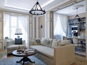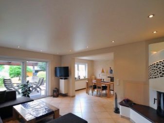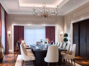 La complexité de la conception et du type de matériau dépend du style choisi. Si vous souhaitez vous concentrer sur le lustre en applique ou en surface, achetez un grand modèle, encadrez-le de manière annulaire et complétez l'éclairage du ruban. Si la toile fait partie d'une composition avec des cloisons sèches, elle est encadrée par un moulage et éclairée à l'aide de projecteurs ou de projecteurs à angle d'inclinaison réglable.