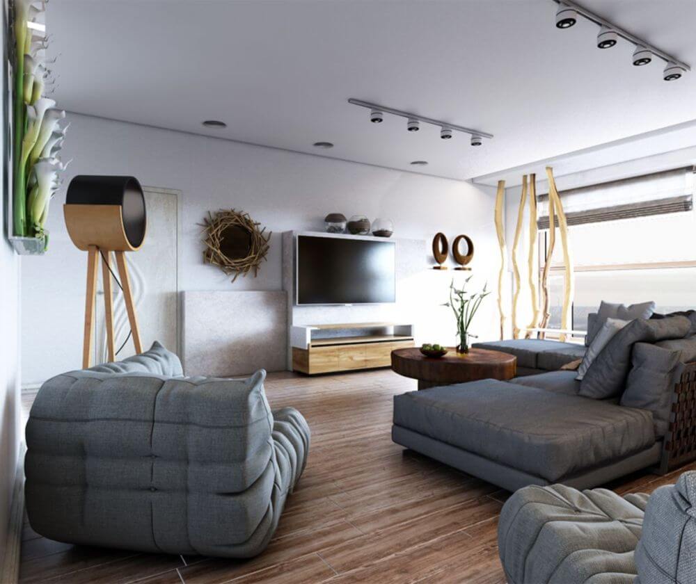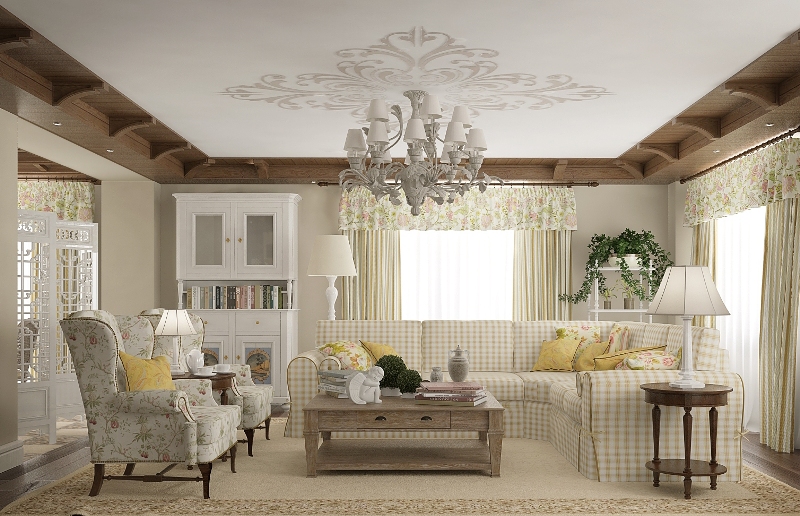 Pour les intérieurs ethniques (par exemple, Direction scandinave) utilise des motifs laconiques: le plafond ne doit pas détourner l’attention de la notion générale de style.