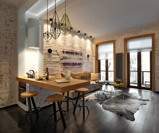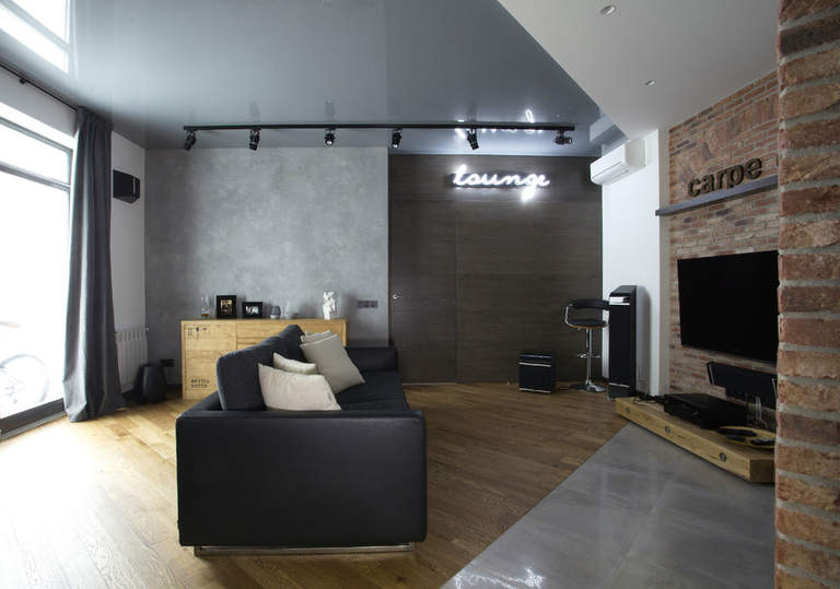 Styles à la mode grenier et grunge Il n’est pas facile de créer avec ces matériaux: le style de ces zones tient compte de la similitude de l’intérieur avec un objet industriel, il est difficile d’appliquer ce décor avec des poutres et des systèmes de communication. Cependant, vous pouvez essayer d'utiliser une simple toile sous la forme d'un léger accent du plafond.