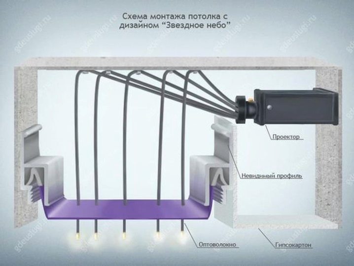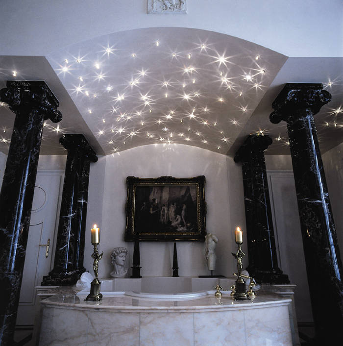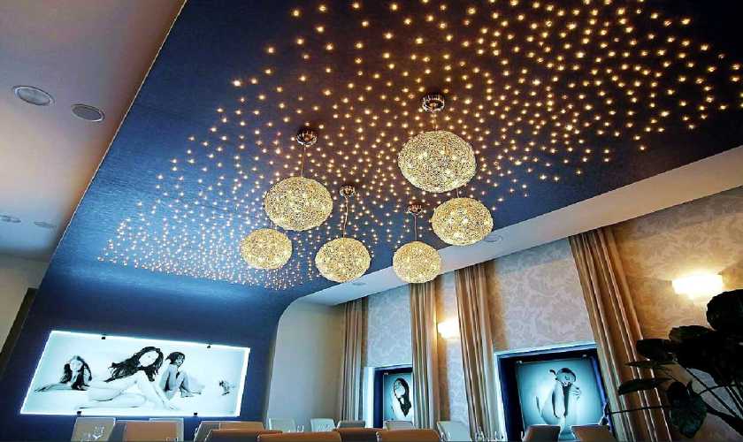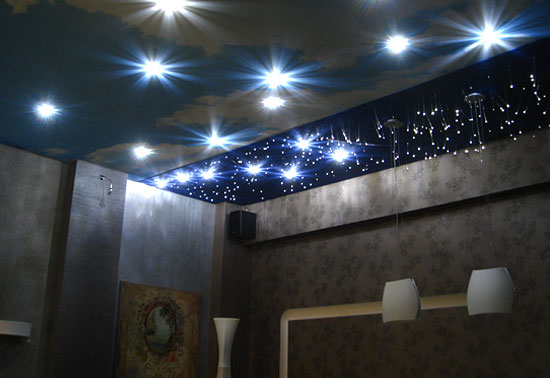 L'effet des étoiles scintillantes est dû aux filaments intégrés de la fibre optique. Les fils et le générateur de lumière sont cachés dans le plafond. De petits trous sont pratiqués dans la toile pour le montage de filaments de fibre optique, qui représenteront les étoiles.