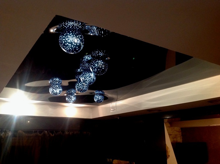 - Variété de méthodes de production et de conception. Il peut s’agir uniquement d’une impression photo sur le film de plafond, de rubans en néon, de lampes encastrées, de bandes de LED, d’incrustations de cristal, ainsi que de diverses combinaisons de solutions de conception.Il peut s’agir d’un plafond tendu en toile ou de petits fragments.