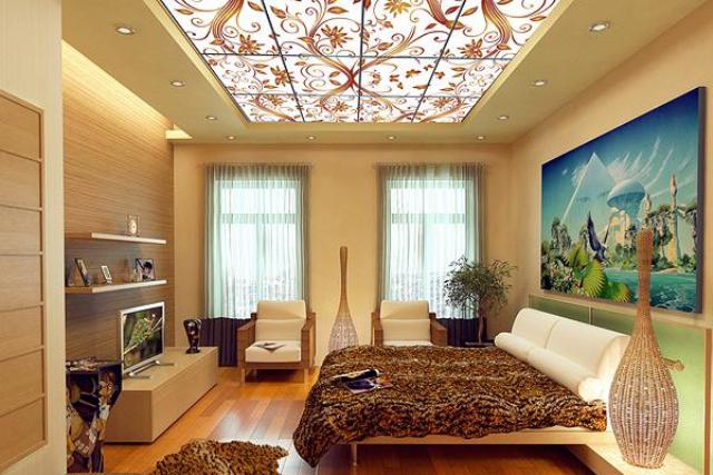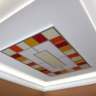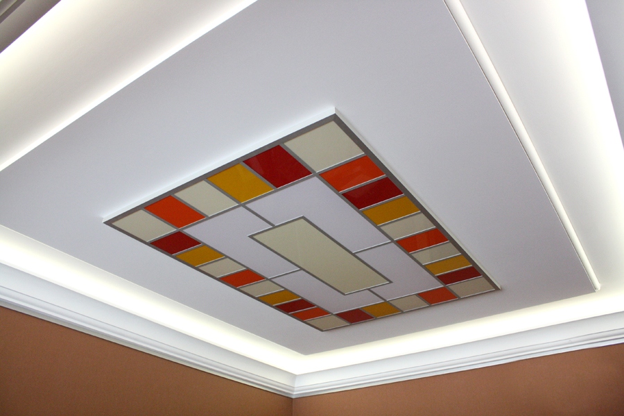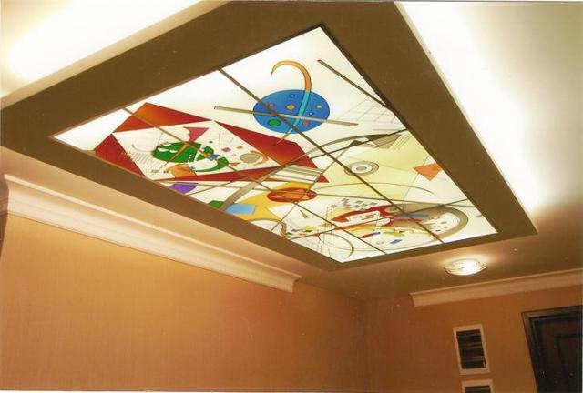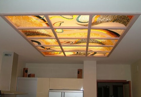 Quelques mots sur les plafonds transparents en acrylique. Un plafond transparent augmentera l'espace, rendra même une petite pièce visuellement plus haute et, plus important encore, la douce lumière traversant les panneaux ajoutera du confort à la chambre, au salon ou au bureau. Les panneaux de plafond sont le plus souvent en verre acrylique (plexiglas), mais le verre au silicate peut également être utilisé. L'ornement appliqué sur des panneaux acryliques ou l'imitation d'un vitrail est magnifique.