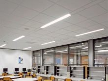La meilleure option pour les luminaires de plafond Armstrong consiste en des lampes encastrées pré-construites qui remplacent un certain nombre de dalles de plafond.