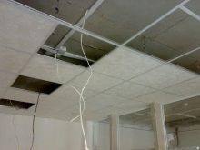 - Plafond classe économique implique des matériaux simples et bon marché - des plaques minérales organiques, plutôt minces et fragiles, sont utilisées comme finition de plafond. Leur production n'utilise pas de matériau résistant à l'humidité, de sorte que toute fuite ou humidité excessive endommagera la finition. Cependant, les conceptions de la classe économique ont leurs avantages, comme une variété d’assortiments, une large palette de couleurs et le poids léger des plaques elles-mêmes.