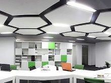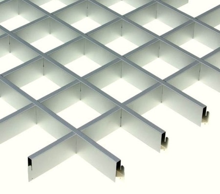 - Plafond raster - c'est une structure cellulaire en suspension, et la taille des cellules peut être complètement différente.De plus, les cellules peuvent avoir différentes formes: carrée, rhomboïde ou polygone. La conception d'Armstrong peut également être attribuée au raster. Un type spécial est les panneaux de plafond, qui sont de petites cellules ouvertes (grille métallique).