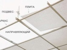 La composition de la structure suspendue reste inchangée une fois installée dans une pièce, seul leur nombre change. Pour installer la structure, vous aurez besoin des profilés suivants: profilé porteur, transversal, de paroi d'angle. Les composants du système de suspension du cadre du nouveau plafond sont des cordes (ou aiguilles à tricoter) pour soutenir les profils et un ressort papillon pour fixer les suspensions.Et, bien sûr, la partie la plus importante de la conception est constituée de plaques ou de cassettes.
