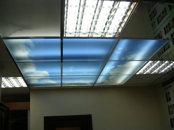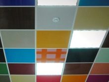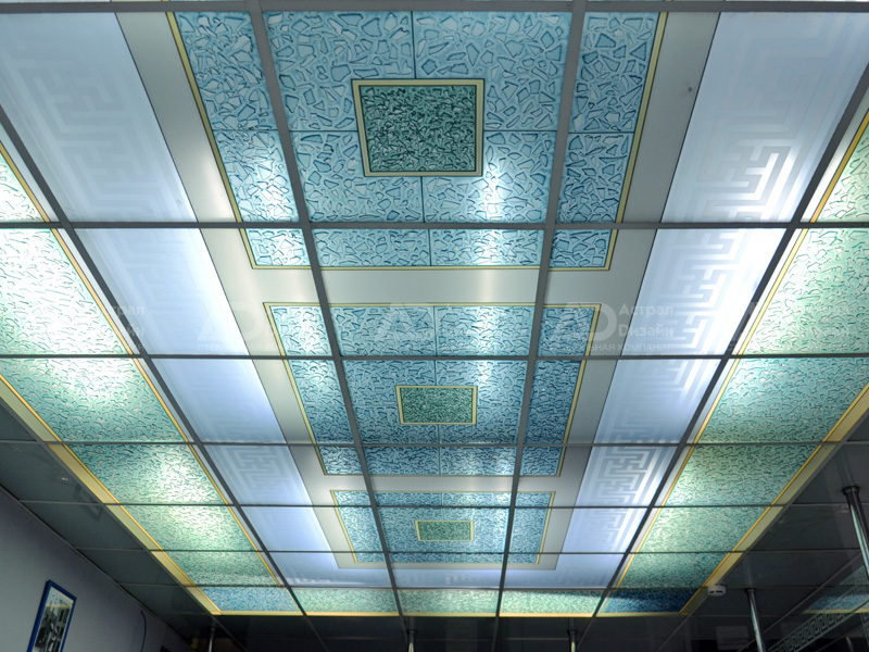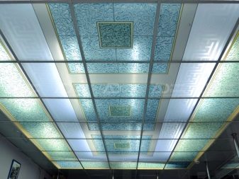 - Plafond de verre. Les carrés translucides de verre ou de plexiglas, illuminés de l'intérieur, ont un aspect noble et élégant. Les constructions en verre s'intègrent parfaitement dans les intérieurs d'appartements modernes et elles conviendront dans toutes les pièces, des couloirs aux armoires, en passant par les cuisines et les chambres.