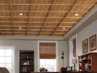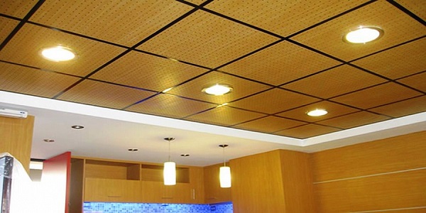 - Arbre toujours populaire en tant que finition, nous notons seulement que les dalles en bois carrées de type Armstrong sont rares. Ces panneaux sont coûteux et nécessitent l'installation d'un cadre de grande qualité et non en métal. Cependant, le plastique moderne imite avec succès le bois. Si vous préférez toujours une finition en bois respectueuse de l'environnement, le panneau en liège ou en bambou sera un substitut frappant aux panneaux en bois. Ils sont devenus populaires relativement récemment, mais ont déjà reçu beaucoup de commentaires positifs,comme ils sont non seulement élastiques et durables, ils présentent également de nombreux autres avantages, tels que les propriétés d'isolation thermique et phonique.