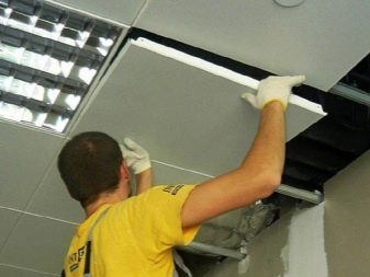 Outre les différences dans les caractéristiques des dalles de plafond, vous pouvez rencontrer un autre moyen de les installer. Ainsi, la plus courante est la manière standard dont la dalle est simplement intégrée dans le cadre, mais il peut également exister une méthode plus moderne: installer des éléments de rognage en les détachant.