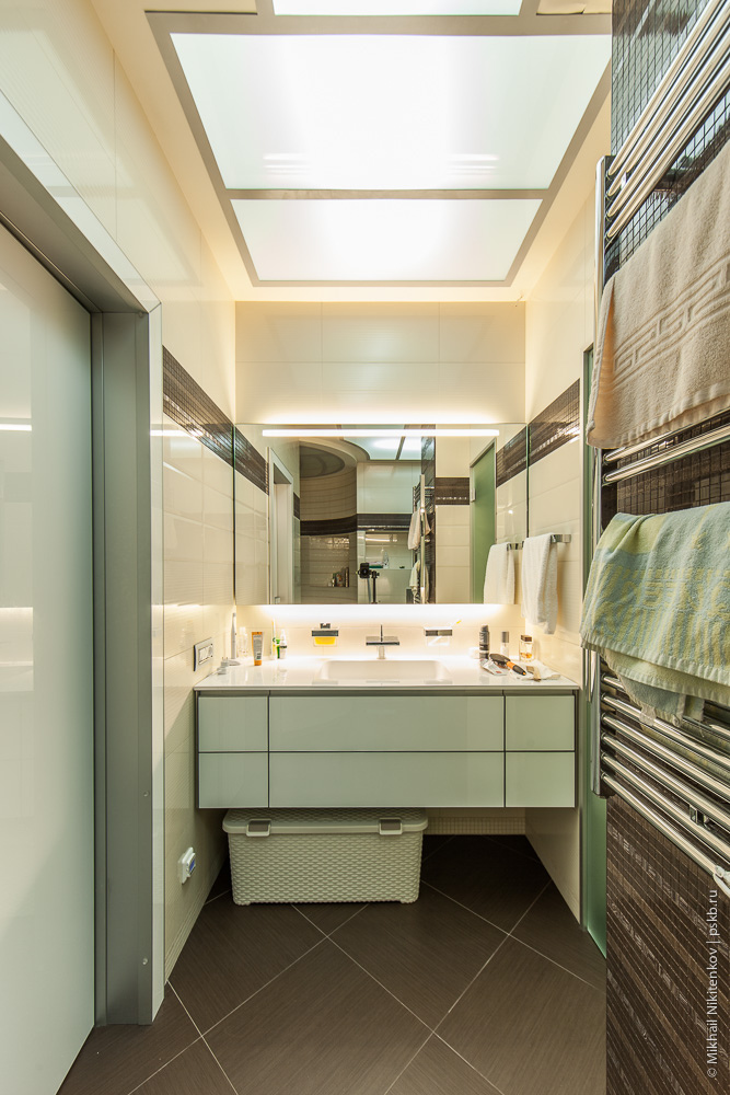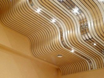 Le plafond miroir reste également au sommet de la popularité. Parlant de tels panneaux, il convient de noter qu’ils sont fabriqués, bien sûr, pas en verre, mais en polystyrène avec un film spécial imitant une surface de miroir (pas nécessairement lisse, mais nervurée). À propos, les panneaux de miroir sont assez flexibles, ils peuvent donc même couper les parties courbes du plafond. Les panneaux de miroir sont faciles à entretenir, n'attirent pas la poussière et sont faciles à nettoyer. Ils conviennent donc non seulement à la décoration de locaux résidentiels, mais également aux salons de beauté, aux clubs, etc.