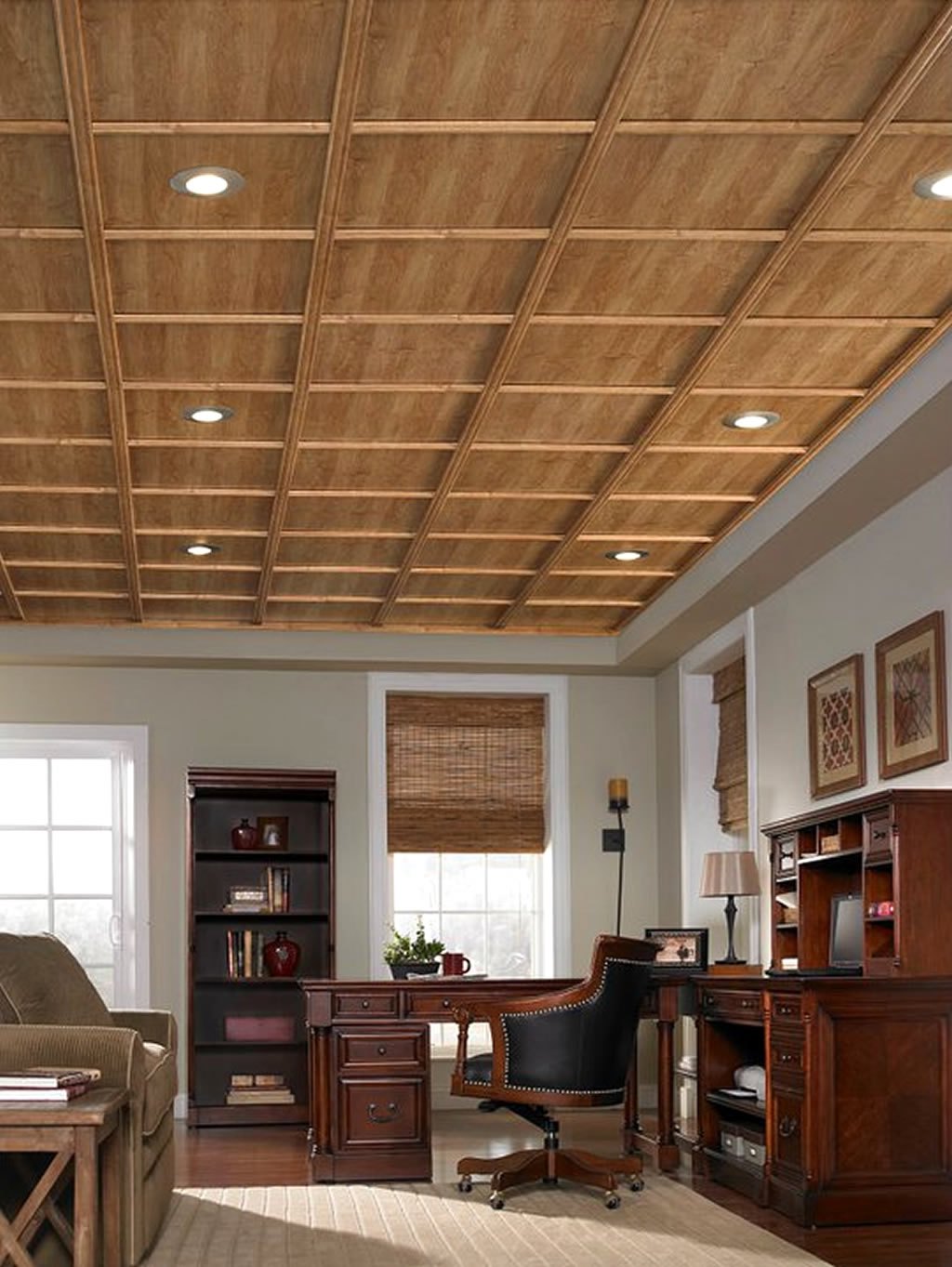 Les technologies modernes permettent à Armstrong de fabriquer du plastique, qui en apparence sera absolument impossible à distinguer d’un plafond en bois. En même temps, il sera résistant au feu et à l’humidité et, ce qui est important, très léger.