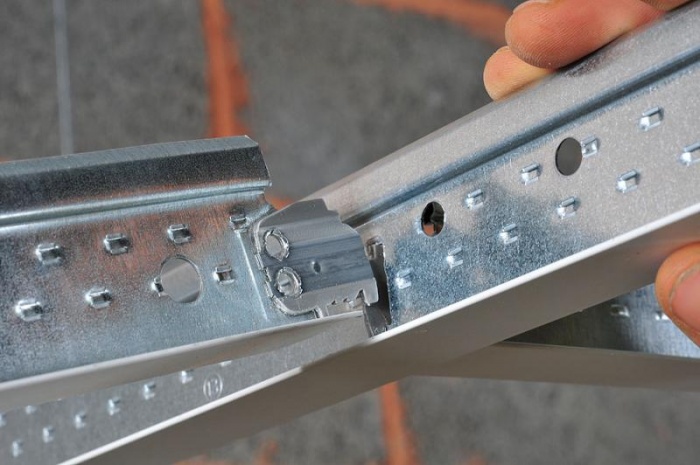 Le succès de l’installation d’Armstrong réside dans la fixation correcte et en douceur des profilés aux murs et au plafond. Tout d’abord, vous devez faire attention au fait que le plafond et les murs de la base peuvent être faits de divers matériaux - bois, béton, pierre, brique. Cela signifie que nous devrons fixer les profils avec des chevilles de différentes tailles. Par exemple, les murs en pierre ou les surfaces de silicate dictent le choix de chevilles d'au moins 50 mm.