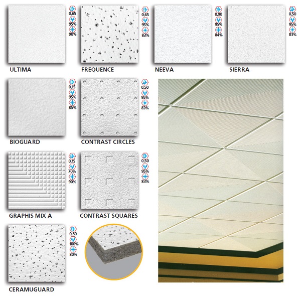 - Les matériaux utilisés pour fabriquer les carreaux de plafond sont très divers. Vous pouvez facilement trouver le meilleur rapport qualité / prix.