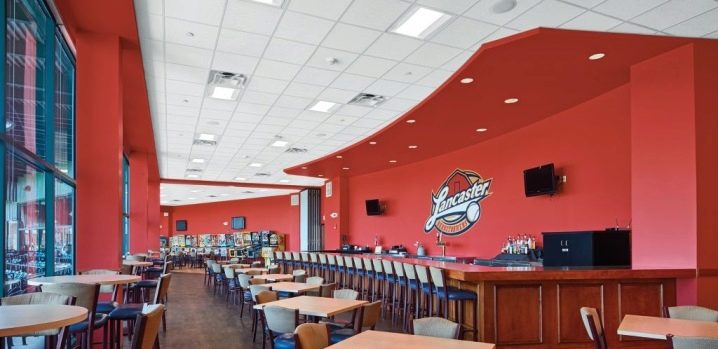 Pour rendre le plafond encore plus original, certains concepteurs ont suggéré de placer les structures suspendues Armstrong sur deux niveaux. Cela peut être nécessaire dans les salles de réunion, les halls d’hôtel, les bureaux, où les plafonds sont assez hauts,et il faut donner à la pièce un certain confort.