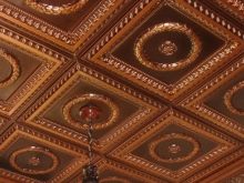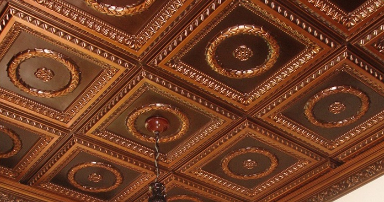 Une attention particulière est accordée à la décoration intérieure moderne du plafond avec des carreaux en mousse plastique avec une surface laminée. Il a l'air lumineux et élégant, vous permet de décorer la pièce à l'origine, lui donner un look inhabituel. Comme les panneaux de plafond de ce type sont décorés avec de beaux dessins, ils peuvent être utilisés en toute sécurité pour un design classique. Le carrelage avec des motifs tridimensionnels est bien adapté aux intérieurs de pièces dans lesquelles les détails de la Renaissance prévalent. Pour que ce plafond s'intègre harmonieusement dans le style général, il doit être complété par un beau mobilier et une décoration murale exquise.