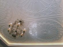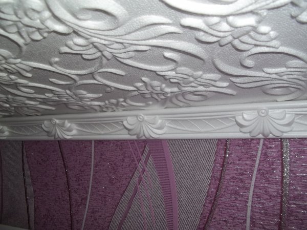- La dernière étape sera les plinthes pour la décoration du plafond, qui sont choisies dans le même matériau.comme tuile. Ils sont également fixés avec de la colle.