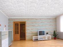 La méthode la moins chère et la plus simple pour finir le plafond consiste à installer des carreaux de mousse. Au prix coûtant, un tel travail peut être assimilé à du lait de chaux traditionnel, mais contrairement à ce dernier, la conception est beaucoup plus efficace, car elle offre d’énormes possibilités pour des idées créatives. Ce matériau a une texture et une couleur riches, simule diverses surfaces et est décoré avec de beaux motifs en relief. Selon le style, vous pouvez choisir un carreau blanc classique ou des panneaux colorés avec du stuc.