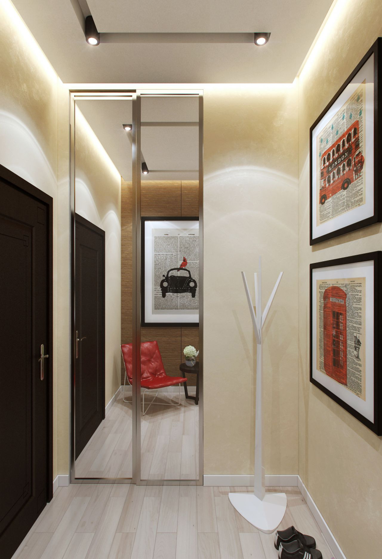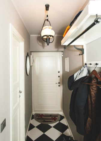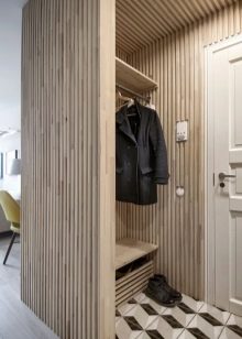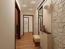 Dans le couloir Khrouchtchev - c'est la plus petite pièce de tout l'appartement. C'est une petite pièce avec un couloir étroit. Un tel mini-couloir a souvent une taille non standard et il est donc difficile d'y installer de grands meubles, tels qu'une armoire, une commode ou un rayonnage.Décorer correctement l'intérieur est très difficile. Un couloir étroit vous permet de diviser la pièce en entrée, en dressing et en couloir.